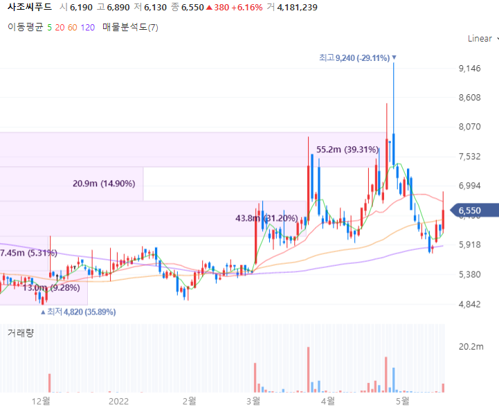 안녕하세요. 오늘은 사조씨푸드 한성기업 동원수산 CJ씨푸드 신라에스지 등 수산 관련주를 살펴보겠습니다. 전쟁 장기화에 따른 식량 공급부족으로 대체 수산 식품의 가격이 상승세와 더불어 일본에서 후쿠시마 오염수 방류를 결정하며 국내 수산 관련주가 강세입니다.