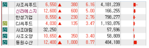 수산 관련주 사조씨푸드 한성기업 동원수산 CJ씨푸드 신라에스지 등 ▷수산 관련주 사조씨푸드 한성기업 동원수산 CJ씨푸드 신라에스지 등