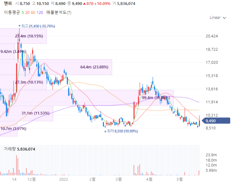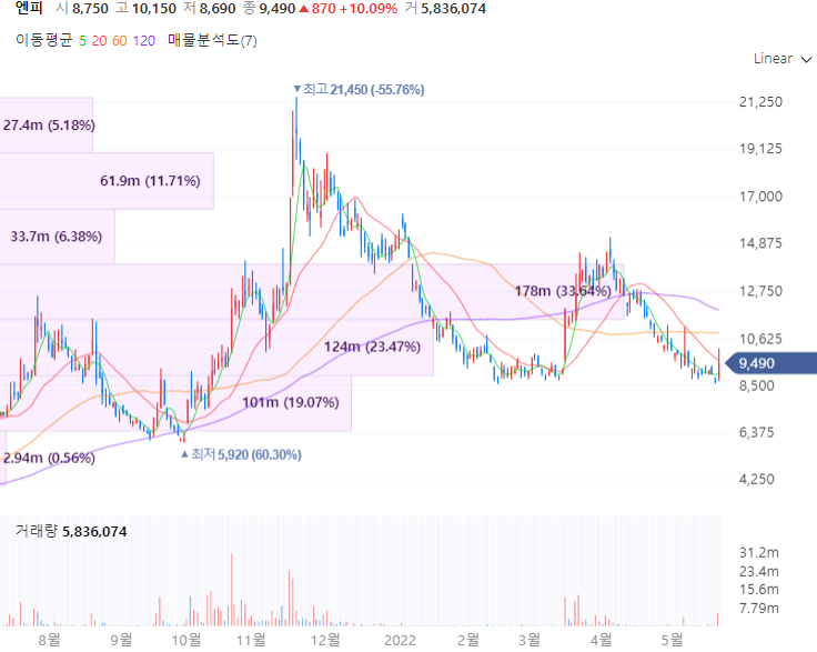 엔피는 위지윅스튜디오가 대주주로 있는 XR콘텐트 제작 전문회사로 지난해 3월 XR 전용 상설 스튜디오를 김포에 엔피 XR 스테이지 오픈했습니다. 엔피는 네이버, YG엔터와 합작법인 설립으로 의정부 리듬시티 복합문화융합단지 내 연면적 2만평 규모로 7개의 다목적 스튜디오 구축 사업을 진행중입니다. 신영증권에 따르면 동사의 올해 매출액 300억원, 영업이익률 10~15%대를 기록할 것으로 전망됩니다.