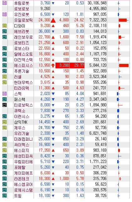 로봇 관련 대장주 에스피시스템스 유일로보틱스 레인보우로보틱스 러셀 휴림로봇 등 ▷로봇 관련 대장주 에스피시스템스 유일로보틱스 레인보우로보틱스 러셀 휴림로봇 등