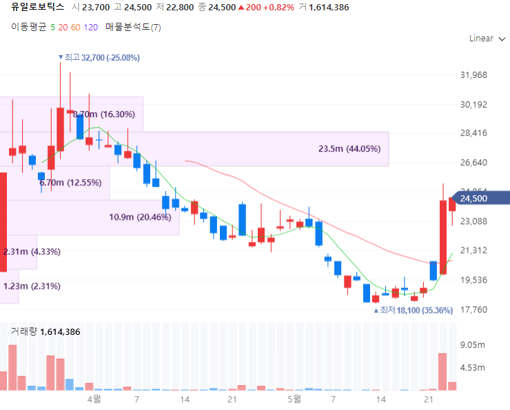 레인보우로보틱스는 카이스트 휴머노이드 로봇센터 연구원들이 창업한 회사로 협동로봇, 모바일 매니퓰레이터, 의료용 로봇, 2족·4족 보행로봇 등 다양한 로봇 플랫폼을 출시했습니다. 레인보우로보틱스는 현대로템과 다족보행 국방로봇 개발 추진이력이 있으며 지난 1분기 연결 기준 매출 36억7537만원, 영업이익 6억1956만원으로 각각 전년 동기 대비 182% 증가, 영업이익은 흑자로 전환했습니다. 회사에 따르면 동사는하반기 IT, 전자, 바이오, 서비스 등 분야에서 활용 가능성이 높은 고정밀 협동로봇과 단 쌓기, 짐 내리기 등 팔레타이징, 택배운반, 조립 자동화 등 고중량물 작업을 하는 협동로봇을 선보일 방침입니다.