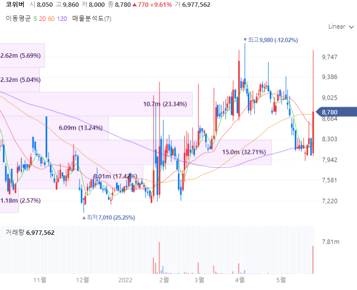 코위버는 유선 광전송장비 등의 제조, 판매 전문 기업으로 KT, LG유플러스, SK브로드밴드 등 국내 주요 통신사업자에게 광전송장비를 공급합니다. 코위버는 LG유플러스, 크립토랩과 광전송장비(ROADM)에 장착되는 양자내성암호 암호화 모듈을 세계 최초로 개발했으며 올해부터 상용할 계획으로 알려집니다. 동사는 ROADM/POTN(기간망), PTS/OTN(메트로망), 5G-PON/광단말장치(엑세스망) 장비의 핵심적인 원천 기술 경쟁력을 보유하며 차세대 백본 전송망의 핵심장비로 동사 기술이 부각됩니다.