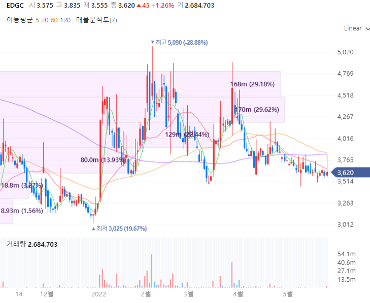 EDGC는 인간유전체데이터의 글로벌 표준을 만든 유일한 아시아 유전체 전문기업으로 개인맞춤형 헬스케어서비스인 YouWho(유후), 건강검진시 혈액으로 조기에 암검진을 하는 세계 최초 액체생검진단인 온코캐치E 등 제품을 보유합니다. EDGC는 지난 2019년 12월 캐나다 의료분야 전문 기업 SCG와 유전체 분석을 기반한 개인 맞춤형 마리화나 치료기술 연구 및 상용 서비스를 위한 업무협약을 체결하며 안전 관리 제도가 완비되면 규제 완화 및 신속한 상용화를 위한 대규모 시설 재배 단지 조성을 검토할 방침입니다. 아울러 동사의 사업보고서에 딸므녀 2021년 7월 캐나다 밴쿠버 소재의 건강기능식품 업체인 내츄럴 라이프 뉴트리션을 인수하며 CBD을 활용한 상품 등에 대한 개발로 미래성장동력 또한 강화할 방침입니다.