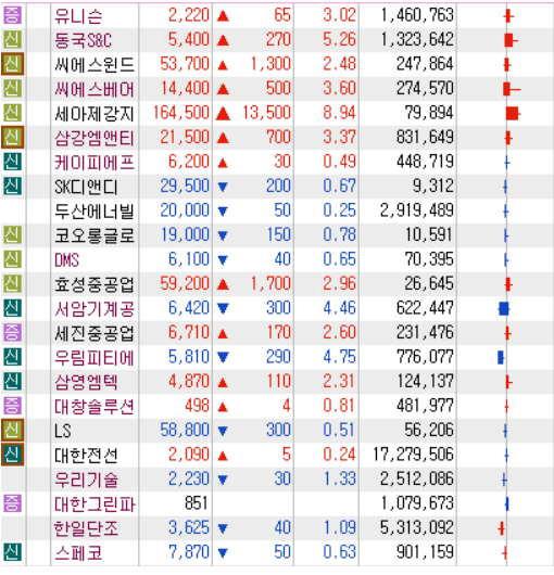 조선주 대장주 한국카본 삼성중공업 현대미포조선 대우조선해양 HSD엔진 등 (0) 2022.05.27 태양광 관련주 OCI 신성이엔지 한화솔루션 에스에너지 대명에너지 등 (0) 2022.05.26 설탕 관련주 대한제당 CJ제일제당 경인양행 삼양사 대상 등 (0) 2022.05.26