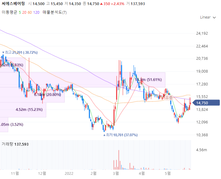 씨에스베어링은 풍력용 베어링 제조로, 블레이드와 로터를 연결하고 지지하는 역할을 하는 피치 베어링과 수평축 풍력 발전기의 요 시스템 중 중요한 요소 중 하나인 요 베어링 전문 회사입니다. 씨에스윈드를 모회사로 두며 글로벌 풍력 터빈 기업인 GE에 14년 이상 베어링을 공급, Vestas, Siemens-Gamesa 등 글로벌 메이저 풍력 터빈 제조사와 협업중입니다. 동사의 실적을 보면 코로나19로 인한 신규 고객 및 제품 승인 지연 때문에 지난해 연결 기준 영업이익 5억3239만원으로 저년 대비 94.4% 감소, 매출액은 955억5801만원으로 같은 기간 7.7% 감소했습니다.