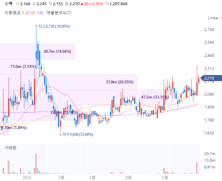 스맥은 삼성중공업 공작기계사업부를 모태로 설립되어 공작기계 및 스마트팩토리 전문업체로 지능형로봇, 자율주행 물류로봇 등 제조합니다. 스맥은 최근 스마트 제조 생태계 혁신을 위한 전략 수립 및 최신 디지털 설계, 스마트 제조 기술 지원에 협력하기 위해 오토데스크와 업무협약을 맺으며 활발히 사업을 영위합니다. 동사는 실제 올 1분기 역대 최대 매출을 기록했으며 국내외 공작기계 시장 호조로 수주 물량이 증가해 성장세를 유지중입니다.