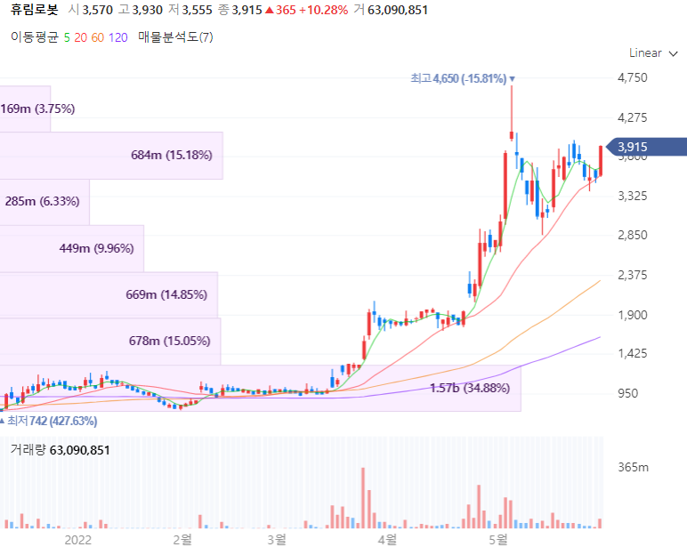 안녕하세요. 오늘은 휴림로봇 아진엑스텍 스맥 현대무벡스 에스엠코어 로봇 대장주를 살펴보겠습니다. 국내 로봇 사업 관련하여 삼성전자는 올해 안에 로봇 시제품 출시, 글로벌 시장 공략 전망으로 의료용 웨어러블 보행 보조 로봇 '젬스 힙' 출시를 앞두고 있으며 현대차는 로봇기업 보스턴다이내믹스 지분 80%를 1조원에 인수하는 등 로보틱스 사업을 진출했습니다. 이외에도 미국 제조업체들이 노동력 부족 현상을 로봇을 통해 해결한다는 소식에 국내 로봇 대장주가 강세입니다. 글로벌 시장조사기관 스태티스타에 따르면 전 세계 산업용 로봇 시장은 연평균 10% 내외 성장할 것으로 2028년 약 89조8700억 규모까지 커질것으로 전망됩니다.