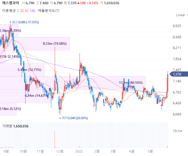 에스엠코어는 신흥우드워크로 설립되어 공장자동화를 위한 산업설비 자동화 시스템 전문 기업입니다. 에스엠코어의 자회사는 자동화 물류시스템에 필요한 자동화 설비를 제작 및 설치하고, 설비 가동에 필요한 제어시스템 및 운영정보시스템 사업을 영위합니다. 지난해 SK하이닉스와 146억원 규모의 무인운반 로봇시스템 공급계약 및 금호타이어 베트남과 105억5836만원 규모 완제품 자동창고 프로젝트 계약을 체결한 바 있습니다.