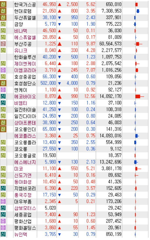 안녕하세요. 오늘은 현대로템 부산주공 에코바이오 유니크 미코 등 수소법 관련주를 살펴보겠습니다. 지난 8일 산업통상자원부에 따르면 전날 국무회의에서 개정 수소경제 육성 및 수소 안전관리에 관한 법률 일명 수소법 공포안이 의결됐습니다. 이에 따라 정부가 조만간 수소법 개정안을 정식 공포할 예정으로 수소 생산, 유통, 활용 전 주기에 걸친 수소 생태계를 조성할 전망으로 국내 수소법 통과 관련주가 강세입니다.
