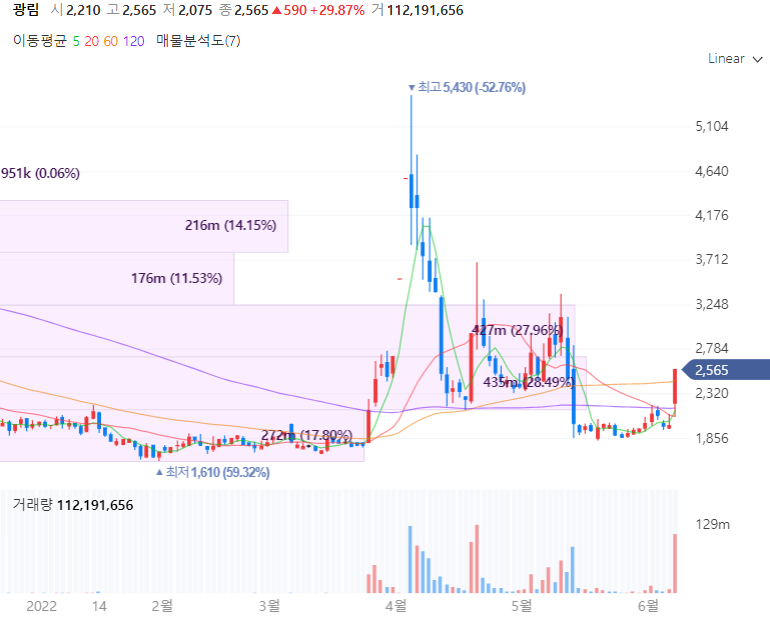 광림은 유압크레인 및 특장차 제조판매 등을 주 영업목적으로 설립된 이동식 크레인 및 특장차 전문기업으로 국내뿐만 아니라 해외시장 점유율이 상승하는 추세입니다. 광림은 지난번 안전보건공단이 시행한 안전투자 혁신사으로 노후된 이동식 크레인 및 고소작업차의 교체수요 발생이 늘어나며 저압보수차, 활선작업차 등 특장차 부분에서 매출이 2배가 상승하는 등 동사의 실적이 크게 늘어 1분기 연결기준 매출이 전년동기대비 34% 증가한 461억원, 영업이익은 4006% 늘어난 41억원을 기록했습니다. 쌍용자동차 인수와 관련해 광림 컨소시엄을 형성하는 주체입니다.