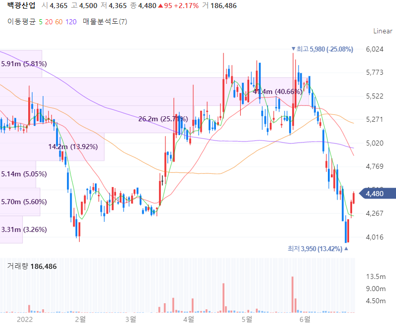 백광산업은 염화나트륨을 원료로 알칼리와 염소를 생산하는 무기화학제품 제조업체이며 식품첨가제로 사용하는 솔비톨과 말티톨도 생산합니다. 백광산업은 사업다각화의 목적으로 2019년부터 음성공장을 신설해 아산화질소(N2O)도 생산하고 있으며 지난 1분기에 매출액 544억원, 영업이익 81억원을 기록해 전년 동기 대비 매출액은 17% 늘었고 영업이익은 82% 증가했습니다. 백광산업은 전해조 설비를 통해 가성소다, 염산, 액체염소 등의 무기화학제품과 솔비톨 등 화공약품 전문 제조사로 중국 석탄가격 급등에 석탄의 메탄올을 주원료로 사용하는 설비가 많은 중국 기업은 타격받으며 국내 석유화학 기업 반사이익으로 수혜가 지속적으로 주목받습니다. 아울러 동사가 다루는 가성소다는 양극재 불순물를 제거하는 과정에도 필요하며 앞으로 전기차 시장 확산에도 주목받습니다.