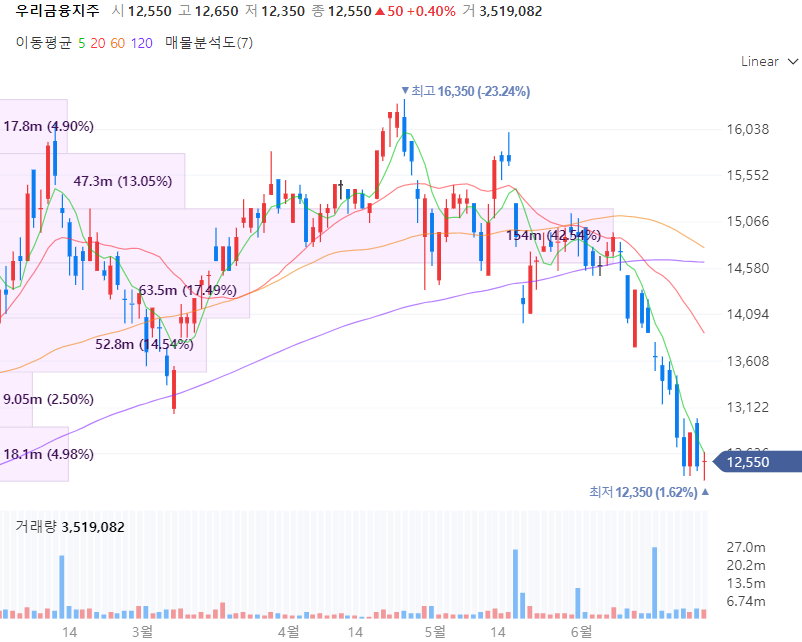 우리금융지주(우리은행) 지주회사로 금융업을 영위하거나 밀접한 관련이 있는 종속기업을 지배하며 종속회사들의 사업은 은행업, 신용카드업, 종합금융업 등이 있고 케이뱅크의 지분 12.6% 보유한 것으로 알려집니다. 최근 우리금융그룹은 서울교통공사에서 진행한 ‘역명병기 유상판매’ 입찰에 참여해, 지하철 4호선 명동역 부역명에 최종 낙찰자로 선정되며 명동역의 새로운 부역명 병기 시점에 맞추어 코로나19로 인해 침체된 명동 상권 발전을 위해 소상공인들과 함께 협업해 다양한 사업을 추진할 방침입니다.