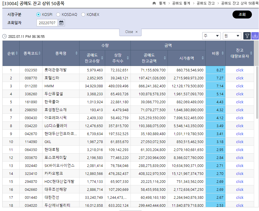 22.7.11 공매도 잔고 상위 22.7.7 공매도잔고 상위 50위.xlsx0.01MB▷서린바이오