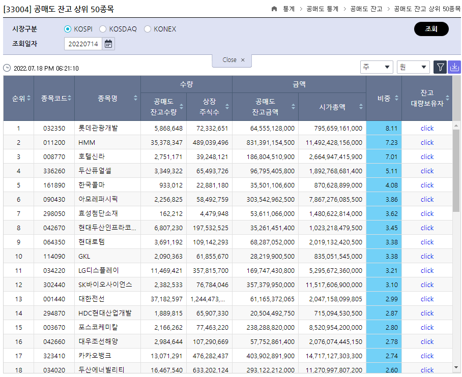 22.7.18 공매도잔고 상위 50위.xlsx0.01MB▶정보데이터시스템(공매도잔고수량,주식통계 분석 바로보기)
