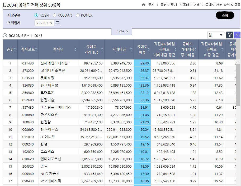 22.7.19 공매도잔고 상위 50위.xlsx0.01MB▶정보데이터시스템(공매도잔고수량,주식통계 분석 바로보기)