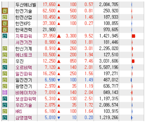 ▷원전 관련 대장주 우진 오르비텍 우리기술 보성파워텍 두산에너빌리티 등