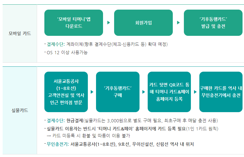 - 실물카드 구매처: https://news.seoul.go.kr/traffic/climatecard-shop