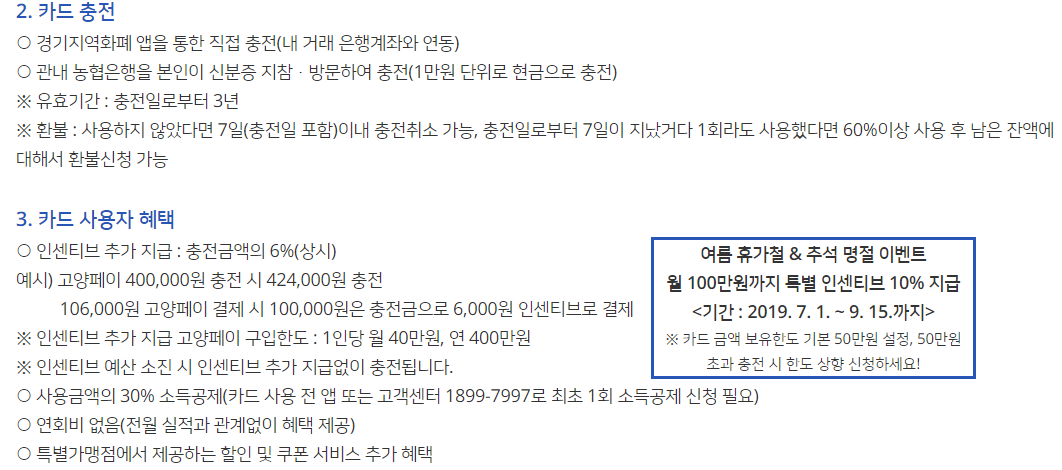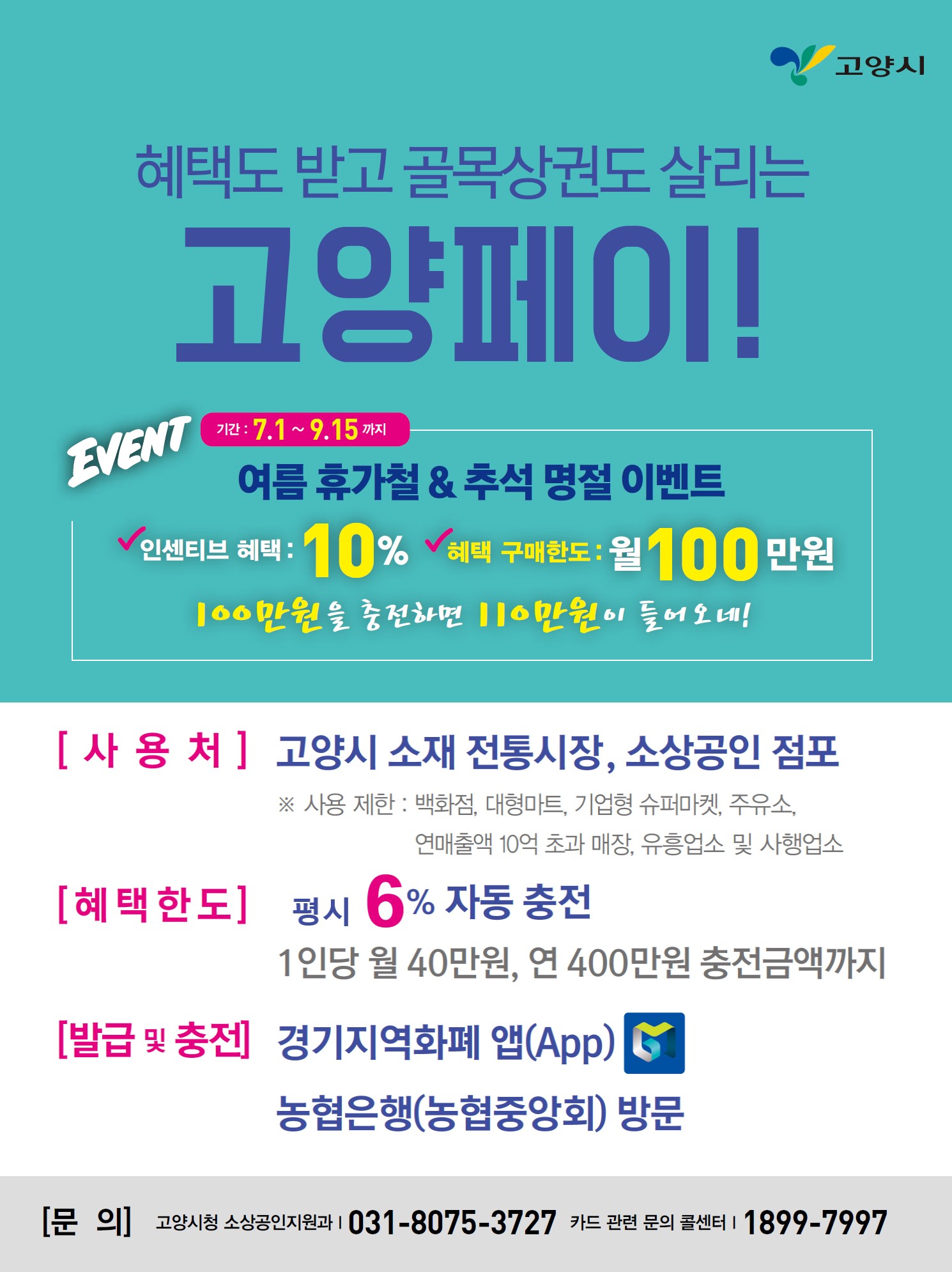 고양페이는 저번 달 7월부터 계속 여름휴가철 및 추석명절을 맞이해서 추가 인센티브를 더 주고 있었네요.