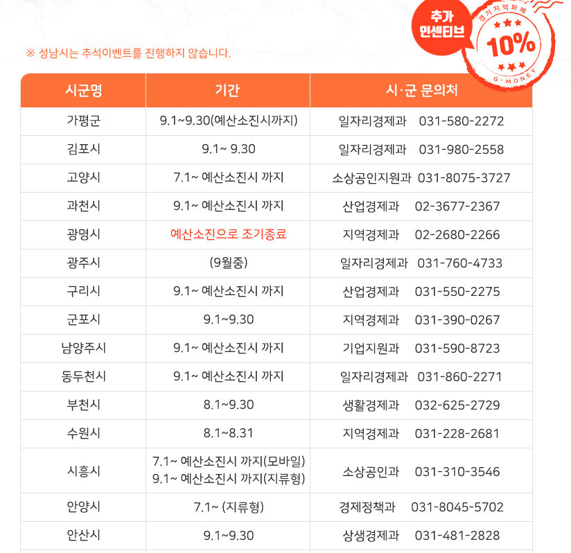 지역별 예산안에서 이루어지기 때문에 벌써 조기마감 된 곳이 있다고 하니 아래 그림을 참고해주세요.