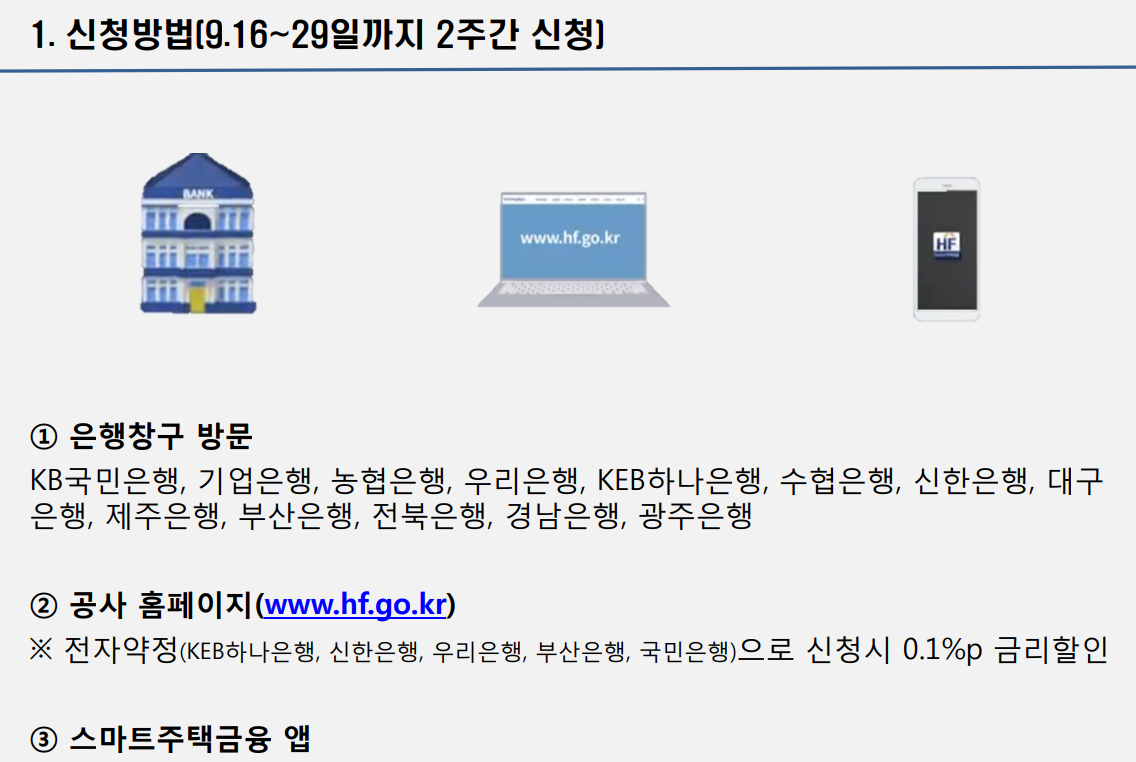 게다가 앞에서 살펴보았듯이 서민안심전환대출 온라인 신청시 0.1% 금리인하 혜택까지 있으니 온라인 방법을 상세히 알아보겠습니다.