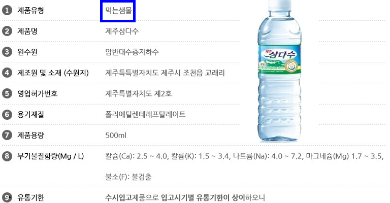 생수 종류 구분 (먹는샘물과 혼합음료 차이)