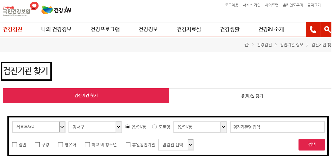 어디로 가야 할지 막막하고 모르신다면 건강검진기관 찾기를 이용하면 됩니다.