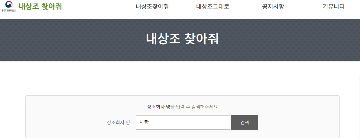 따라서 공정거래위원회에서 이런 문제점을 개선하기 위해 내상조 그대로 서비스를 또한 제공하고 있습니다.