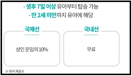 국제선의 경우 성인 운임의 10%를 지불해야 하고, 국내선의 경우는 무료입니다.