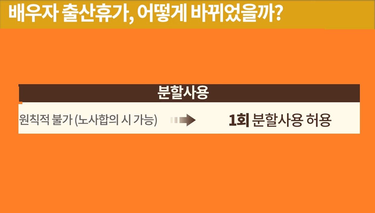 셋째, 기존에는 배우자 출산휴가를 원칙적으로 나눠 사용하는 것이 불가능했습니다.