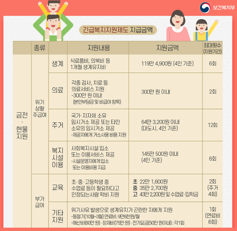 긴급복지지원은 한시적으로 하는 것이지만 한 번만 지원하고 끝나는 것이 아닙니다.