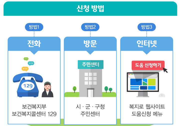 긴급복지지원을 신청방법은 총 3가지입니다.