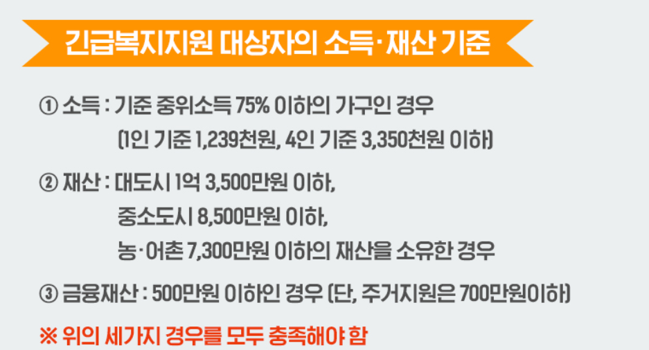 긴급복지지원제도는 정말 위급한 상황을 우선적으로 고려해서 지원하고 있지만, 소득, 재산, 금융자산 등 기준에 맞는지 여부도 확인하고 있습니다.
