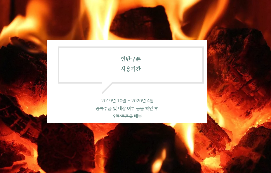 2019년 올해 하반기에도 역시나 저소득층을 위해 연탄쿠폰을 제공하고 있습니다!