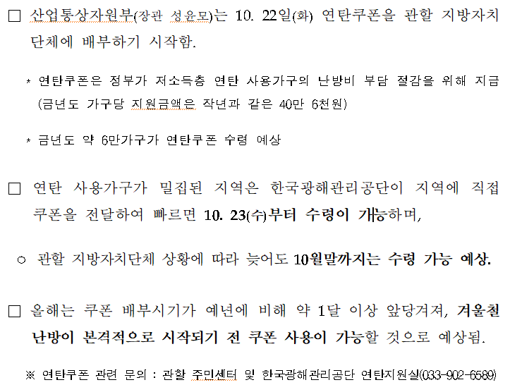 : 연탄쿠폰은 관할 지역 주민센터나 동사무소