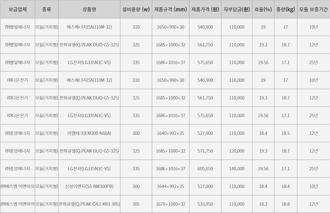 태양광 모듈 보증기간도 최소 10년이라서 보장이 든든할뿐더러