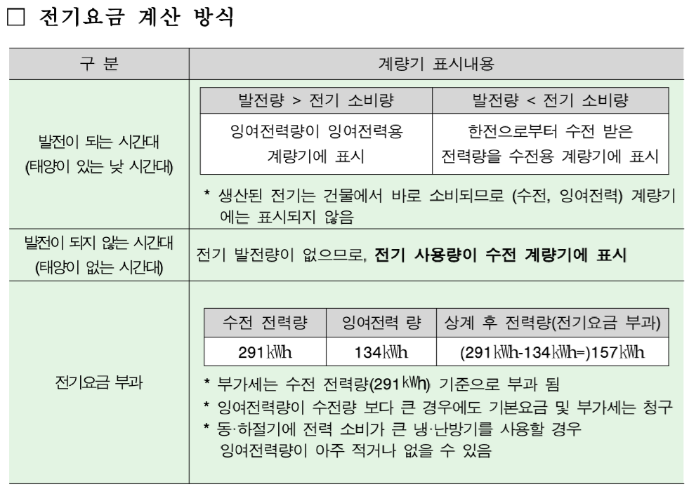 태양광 설치 후 전기요금 계산은 다음과 같습니다.