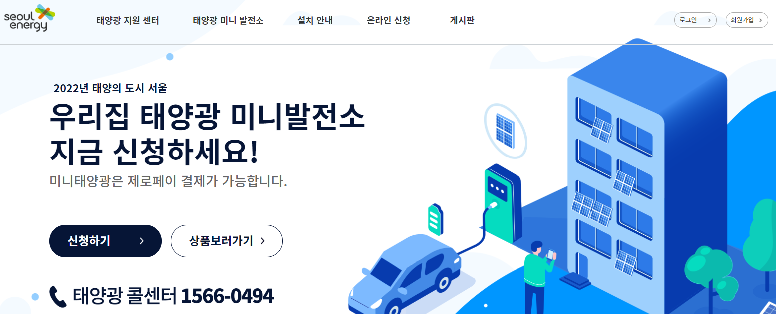 서울시 가정용 태양광 설치사업은 아파트 베란다 등 미니 태양광을 설치 지원해줍니다.