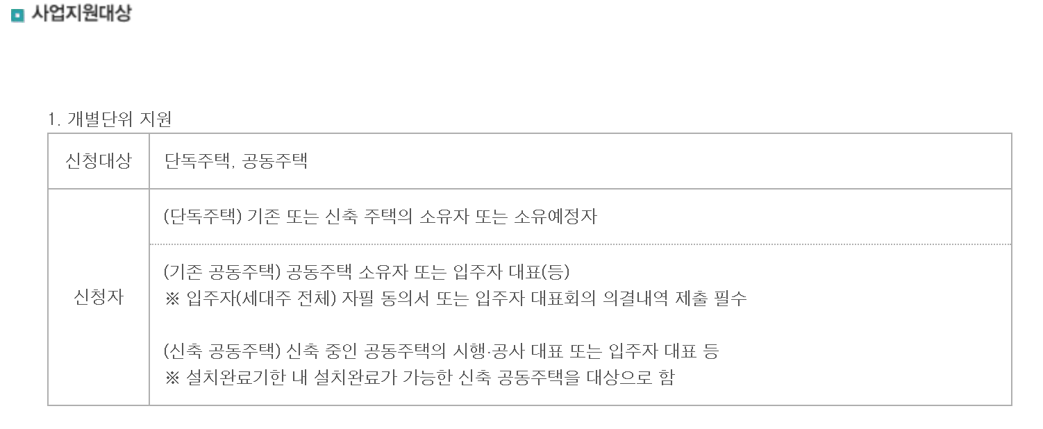 : 신청자격은 우선 단독주택 및 공동주택을 의미합니다.