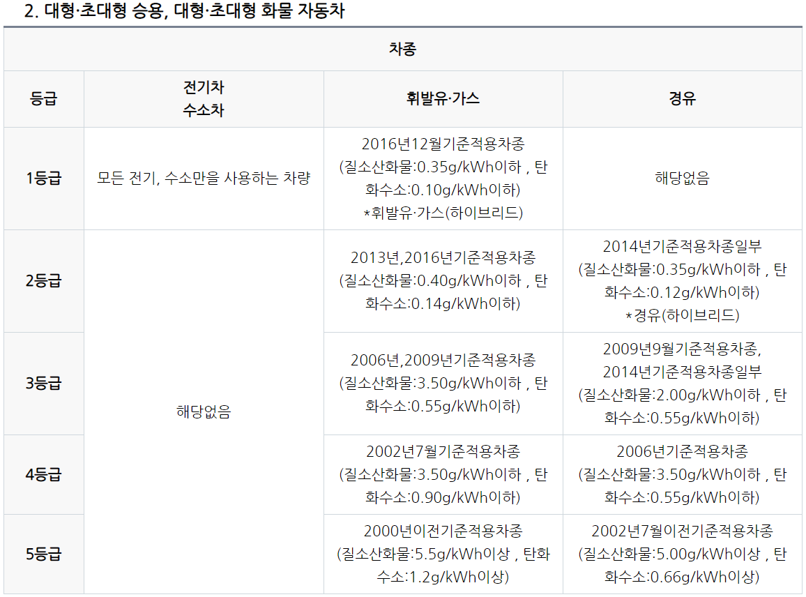 - (경유) 2002년 7월 1일 이전 기준적용 차종이 5등급입니다.