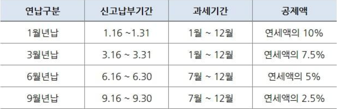 당연히 자동차세 연납신청은 빠르게 납부할수록 세금 감면이 커집니다.