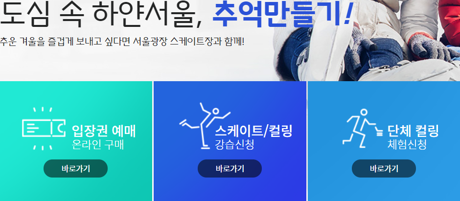 : 스케이트 입장권 예매는 서울광장스케이트장 홈페이지에서 온라인으로도 가능하며