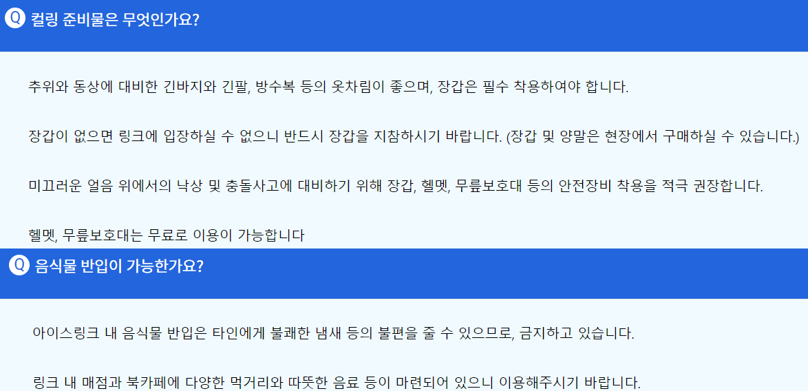 다만, 컬링 체험은 초등학교 재학생 이상만 이용이 가능하다고 합니다.