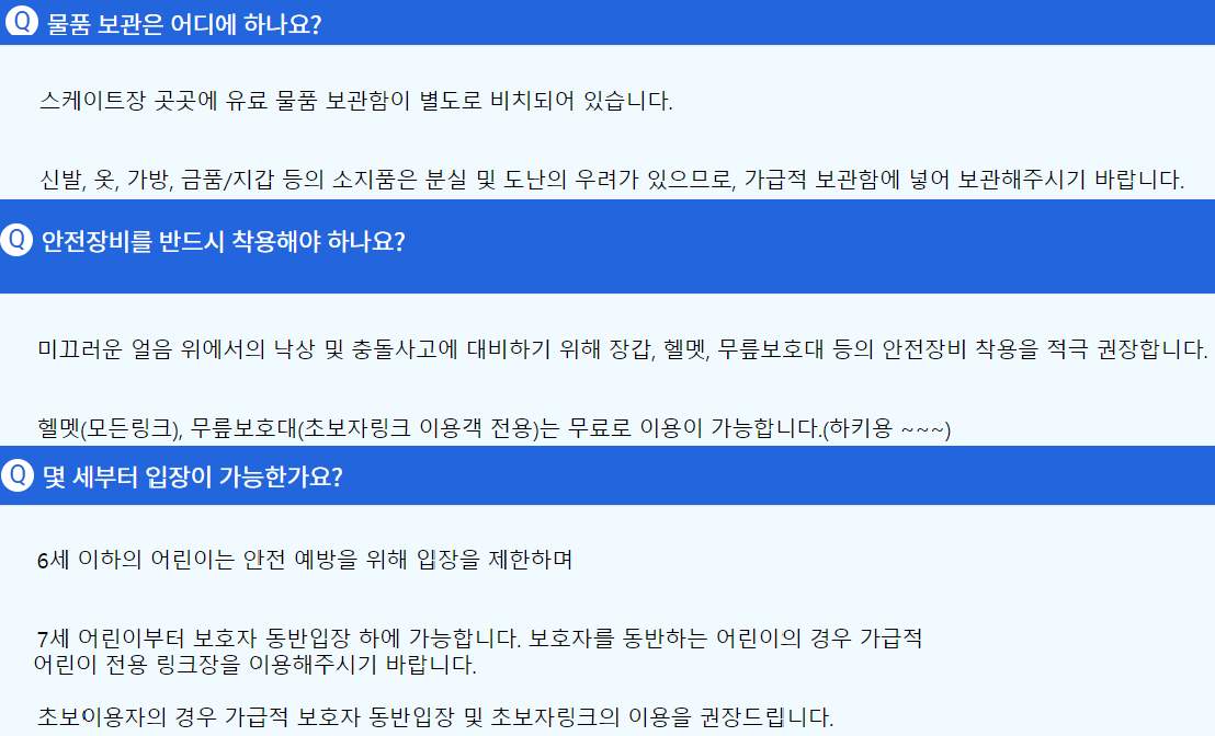 마지막으로 스케이트장 이용시 유의사항에 대해 살펴보겠습니다.