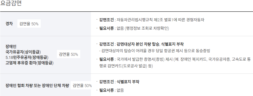 여기에 더불어 저공해 자동차 및 다자녀가구 역시 공항 주차요금을 감면받을 수 있습니다.