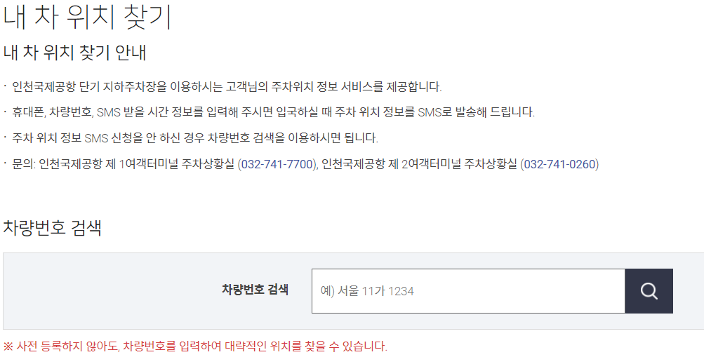 인천공항 홈페이지에서 내차 위치를 쉽게 찾을 수 있습니다.