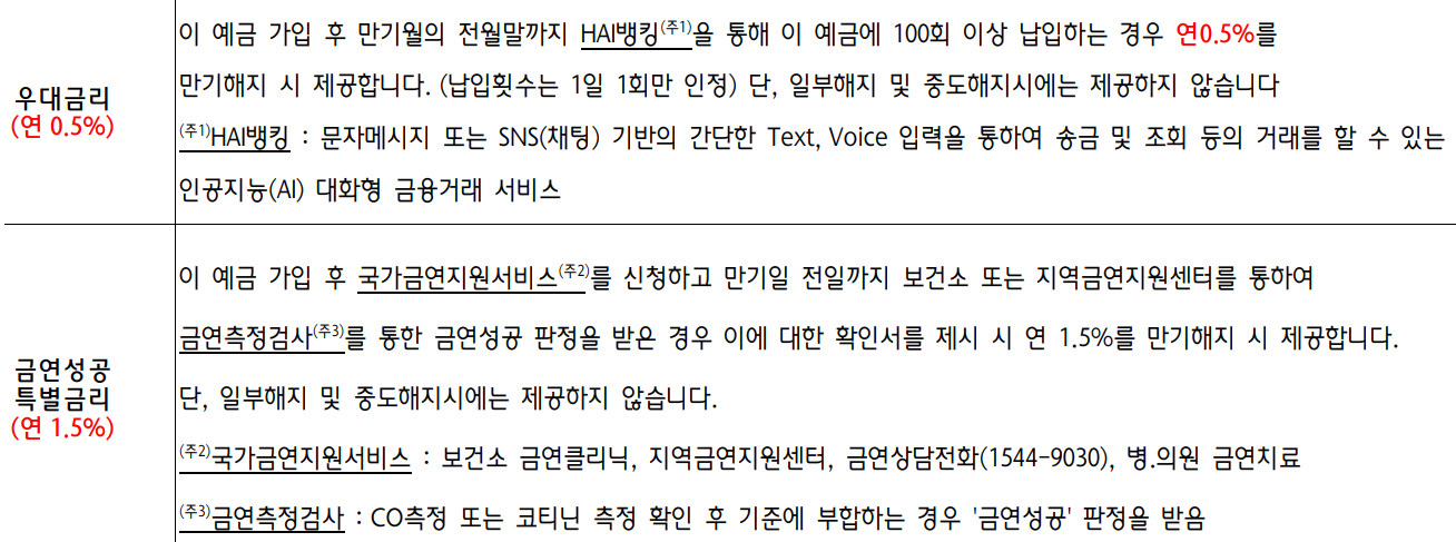 금연에 성공하면 우대금리가 제공됩니다.