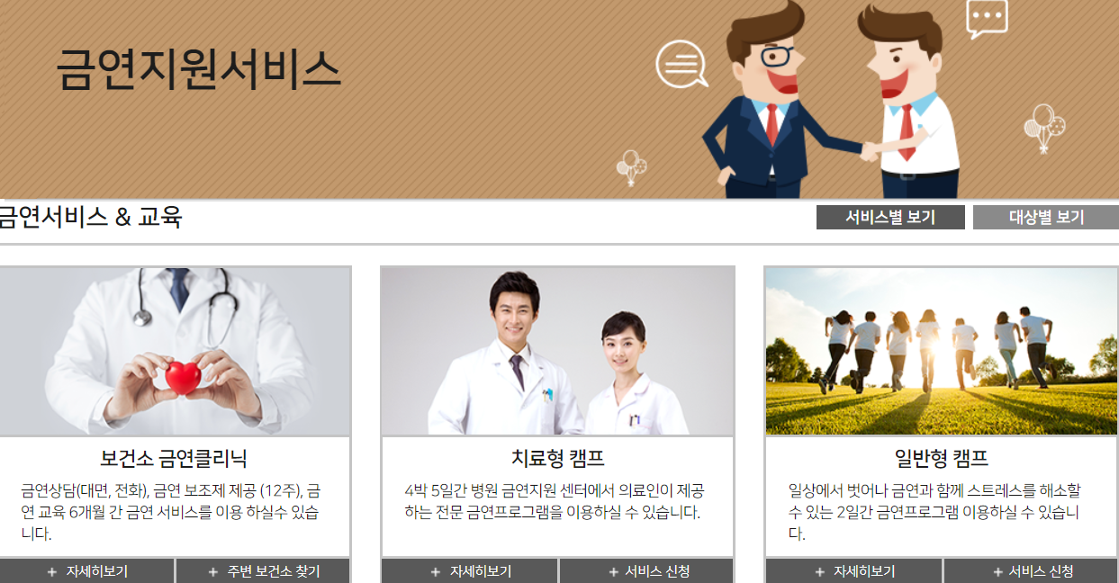 흡연으로 인한 폐해가 심해지고 질병 발생률이 높아짐에 따라 국가에서 경제와 연결 지어 다양한 방면에서 금연을 도와주는 서비스를 실시하고 있습니다.