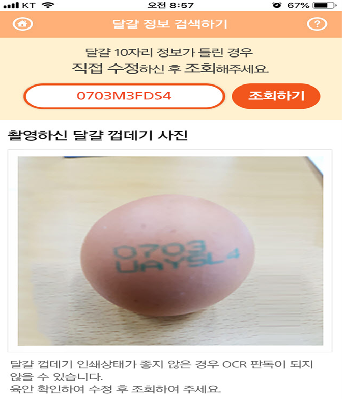 다만 달걀 껍데기 인쇄 상태에 따라 OCR 판독이 오작동 날 수 있으니 유의해야겠네요.