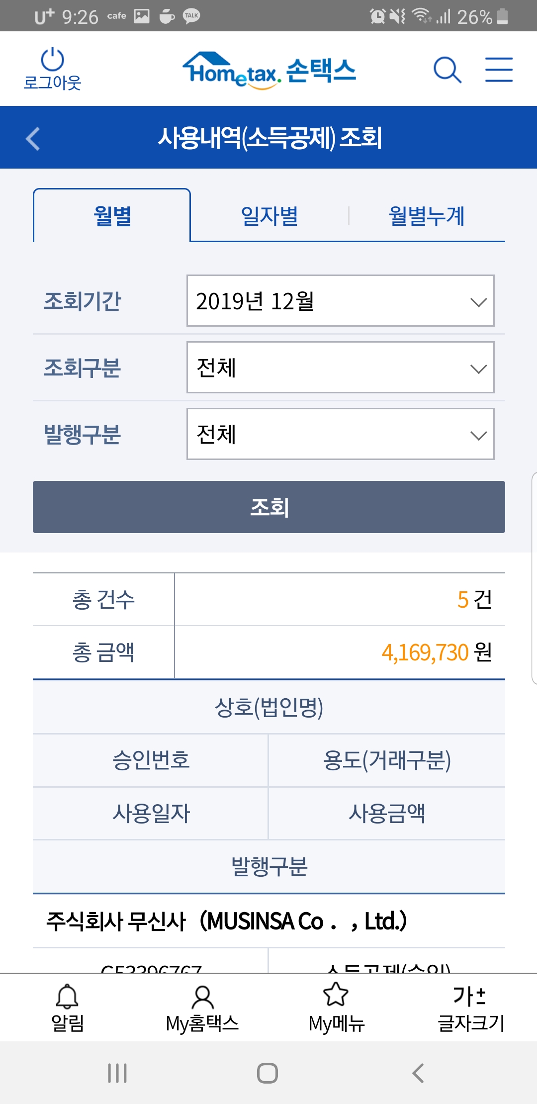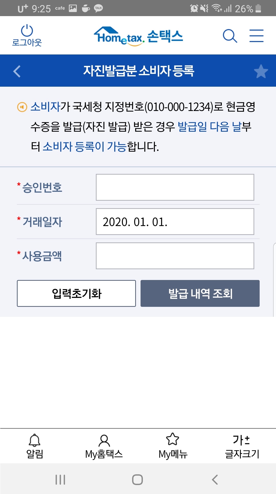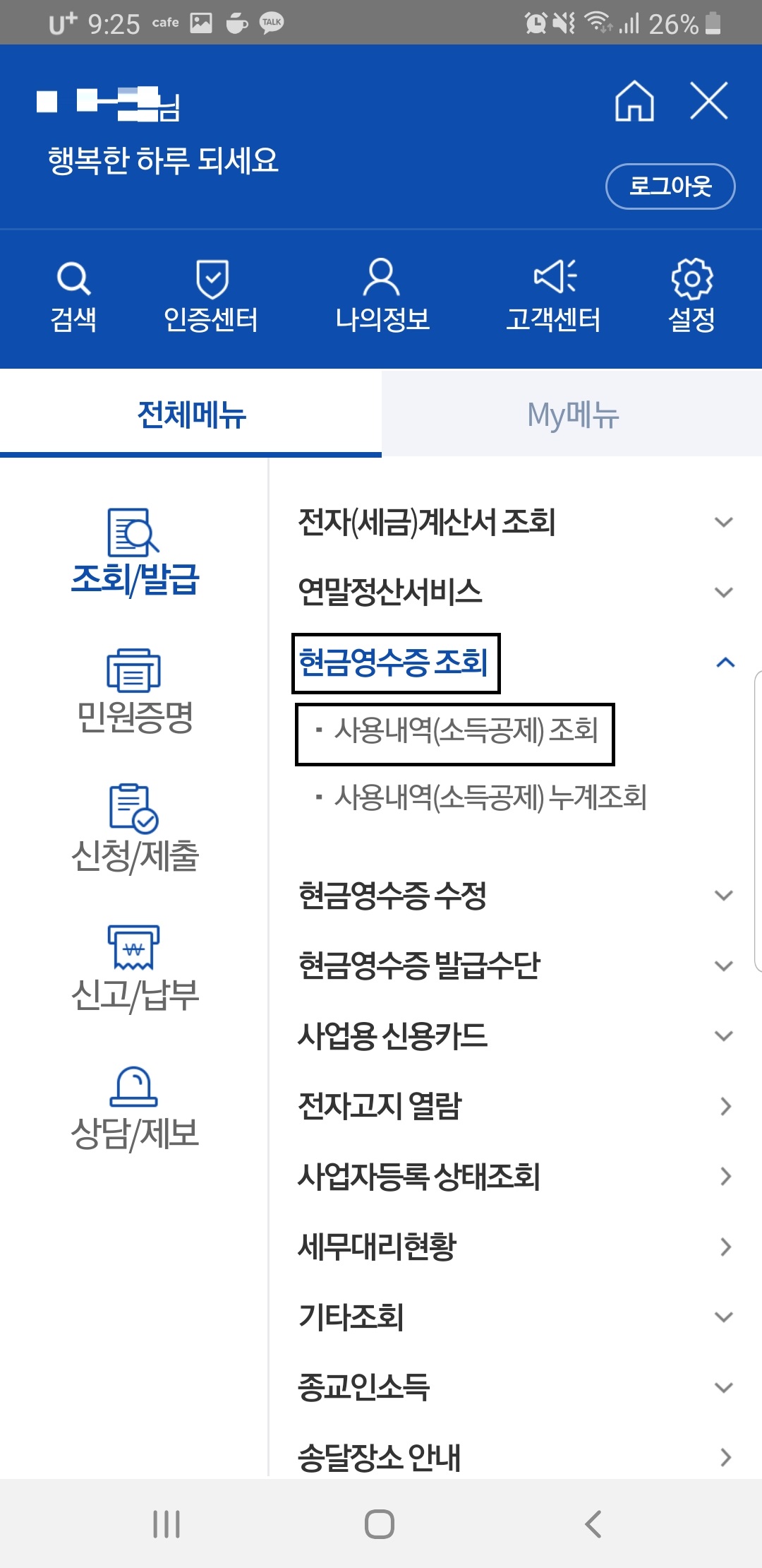현금영수증을 등록하고 제대로 됐는지 확인 역시 홈택스 어플에서 한 번에 가능한데요.