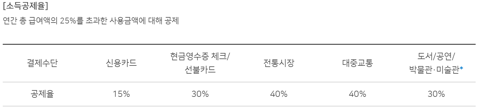 신용카드는 15% , 체크카드 및 현금은 30%를